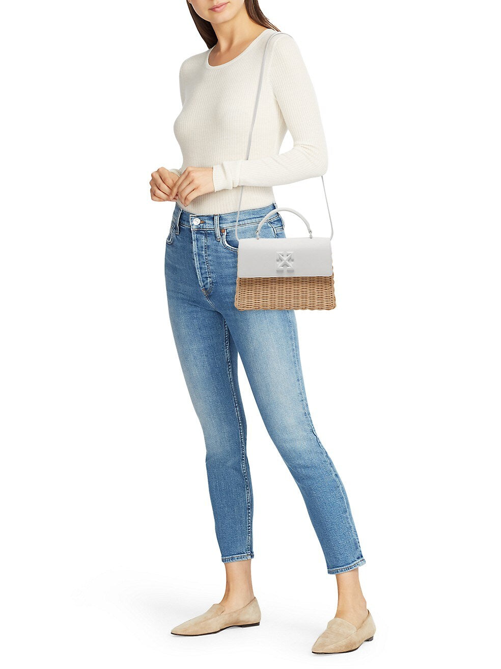 Off-White Jitney Off-White Tote Bag in Straw and Leather